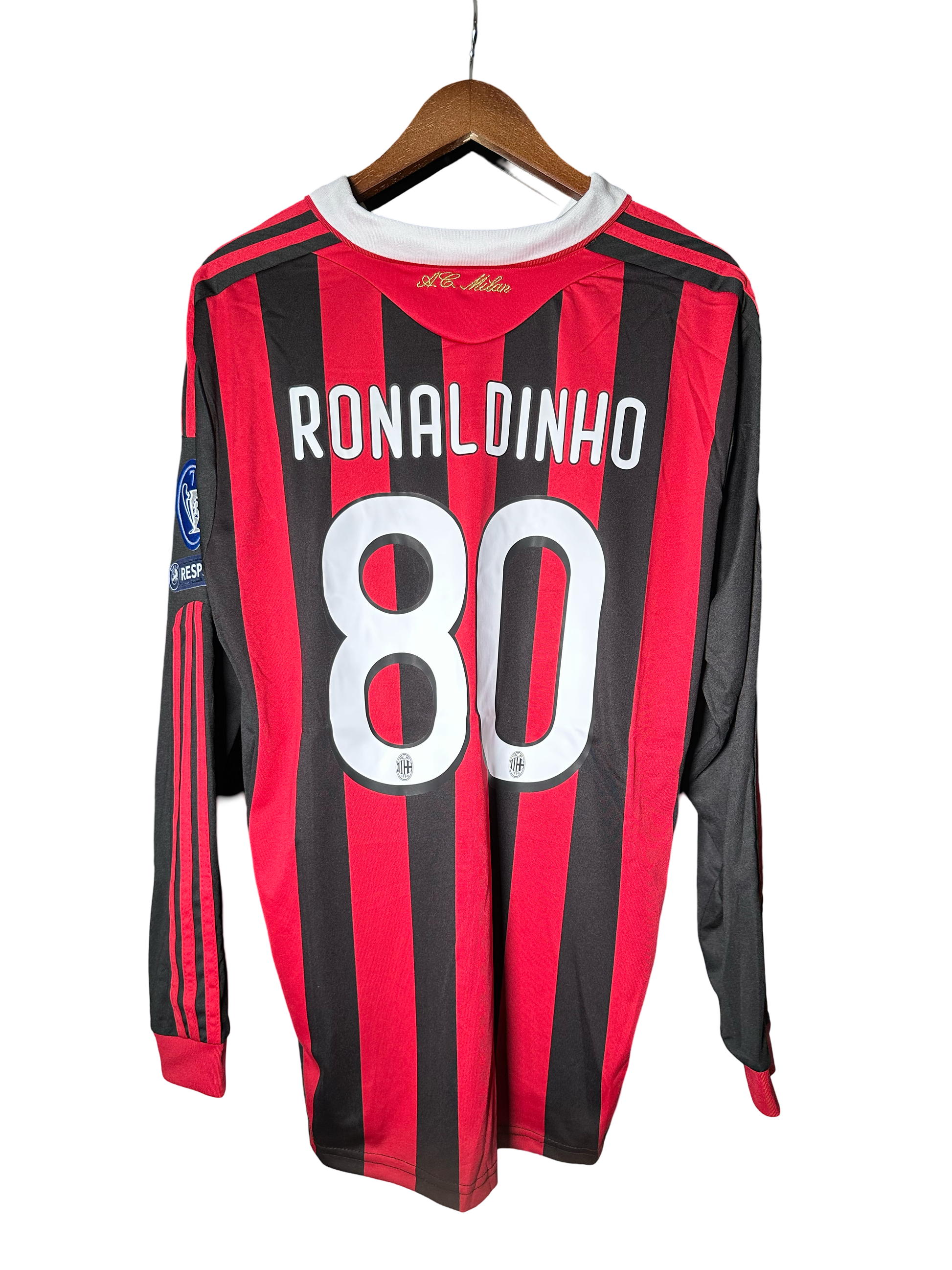 Ronaldinho #80 AC Milan 2009-2010 Retro Home SOCCER Jersey - Long Sleeve